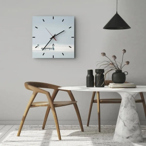 L'horloge est produite avec un verre de sécurité de 4 mm d'épaisseur. La technologie de fabrication de l'horloge est conforme à la classe de sécurité 2B2 selon la norme PN-EN 12600 : 2004, qui garantit la résistance aux chocs. L'horloge en verre est prête à être accrochée - elle a une attache en métal attaché à l'arrière et une entretoise en mousse régulant la distance uniformément de l'horloge par rapport au mur. L'horloge a un mécanisme flottant silencieux alimenté par une pile 1.5V - pile AA (pile non incluse).
