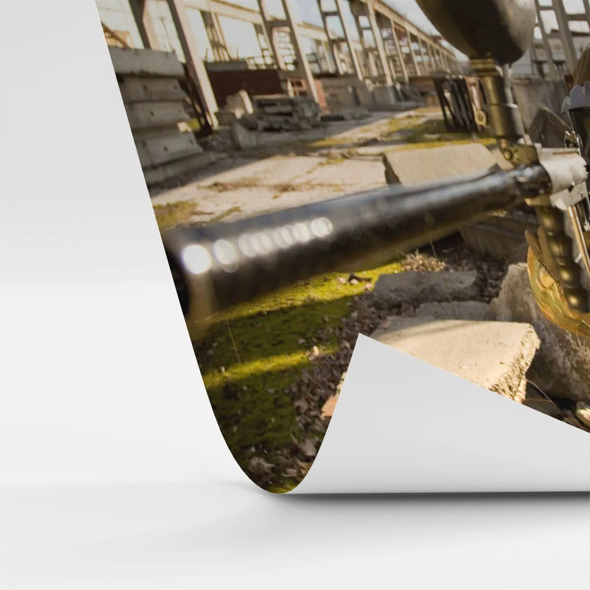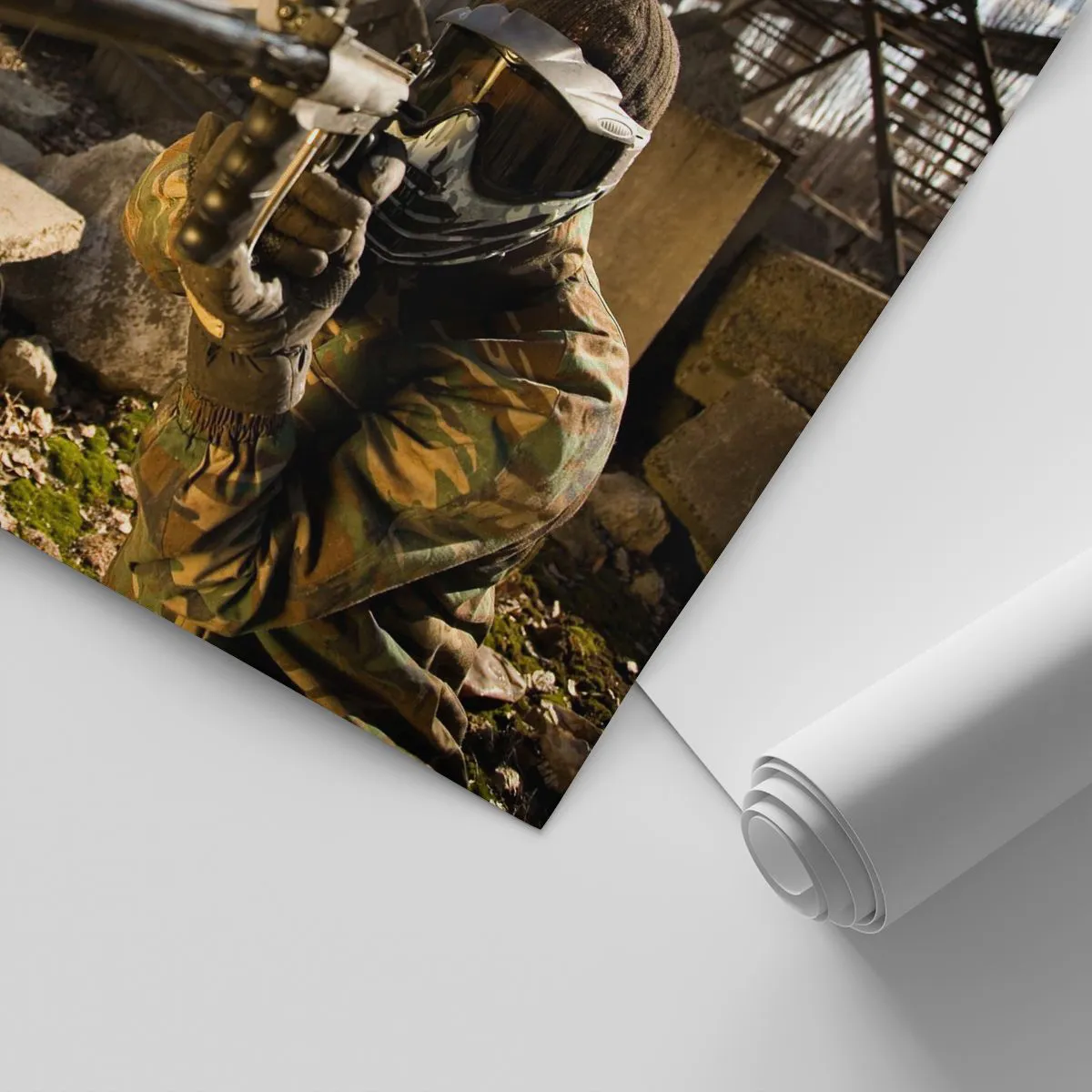 Si vous cherchez une décoration murale qui capture l'adrénaline, la stratégie et la compétition, « You Can Be a Hero Too » est le choix idéal. Le paysage urbain, un joueur de paintball et une perspective dynamique donneront à votre intérieur une touche d'énergie et d'action.