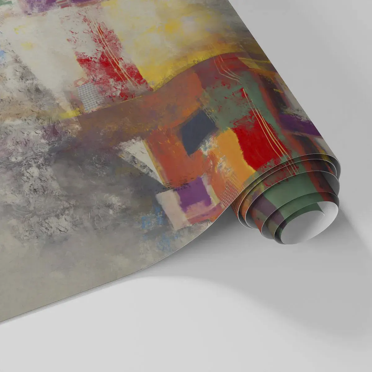 - Ce papier peint présente une abstraction colorée avec des formes géométriques et des textures. Sa composition vibrante et sa riche palette de couleurs confèrent à votre intérieur une touche moderne et artistique.
