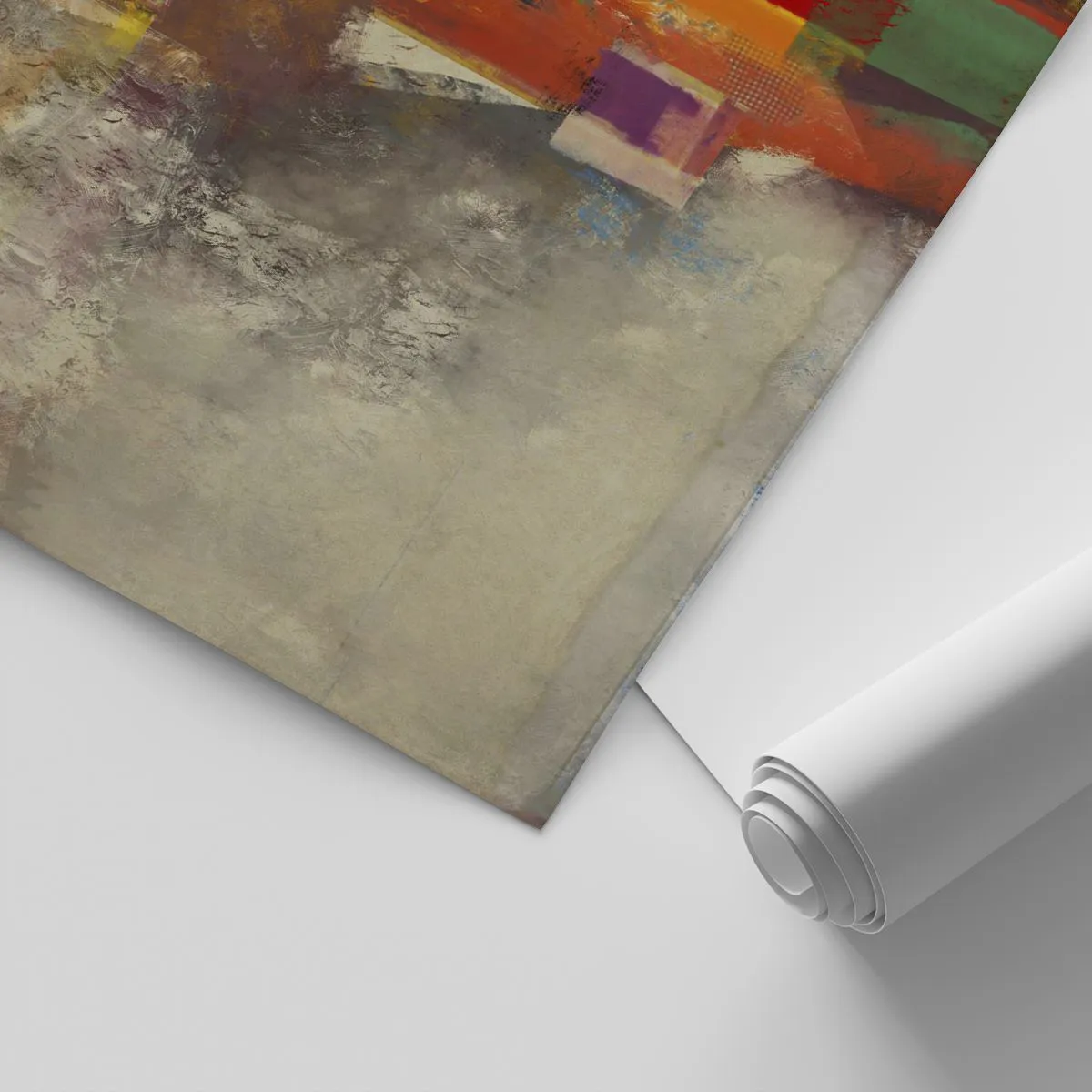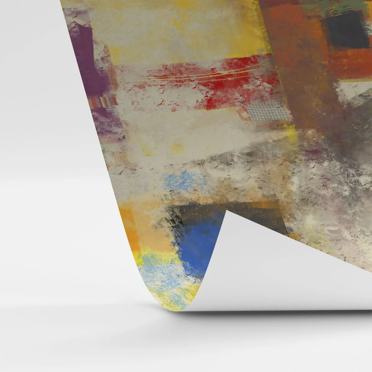 « Géométrie colorée » est un papier peint photo qui attire l'attention par sa composition expressive et la richesse de ses couleurs. La forme abstraite associe des formes géométriques à un effet pictural texturé, créant une alliance unique d'art et de design moderne. Les couleurs incluent des nuances chaudes de jaune, de rouge et d'orange, entrecoupées de touches froides de bleu et de violet.