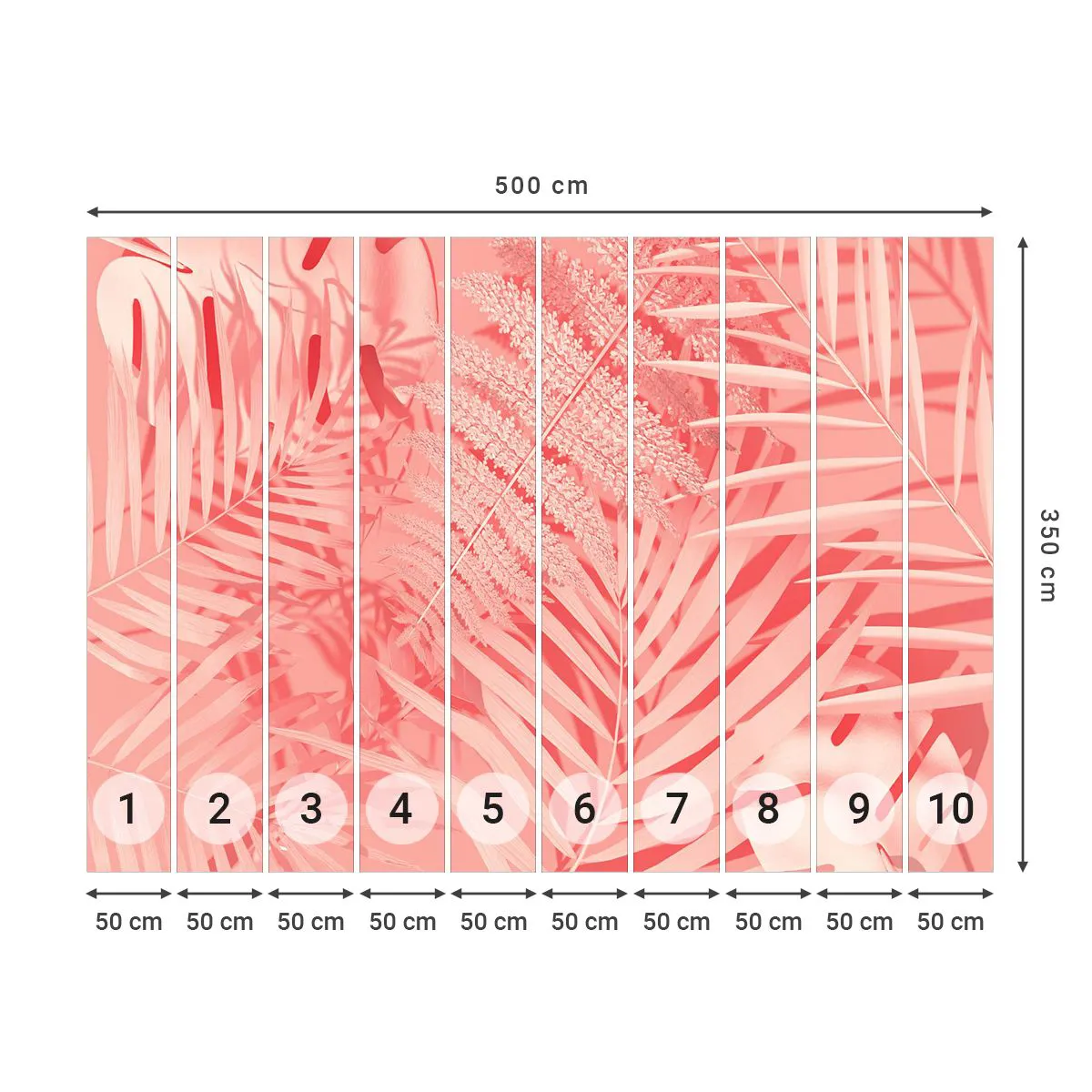 Papier Peint Photo Standard Eco - Concept de rose - Abstraction, Feuille de palmier, Graphique - 500x350 cm