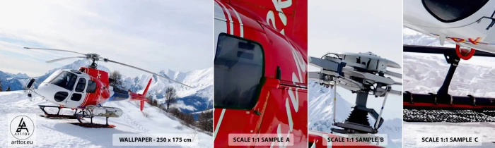 Échantillon De Papier Peint Standard Eco - Toujours prêt - Hélicoptère, Paysage, Alpes - 100x30 cm