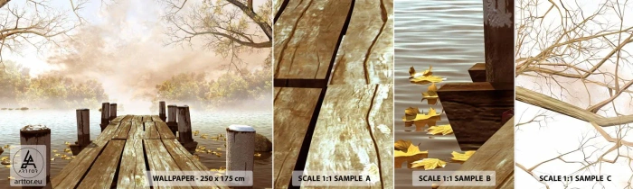 Échantillon De Papier Peint Standard Eco - La douce tristesse de l'automne - Paysage, Lac, Pont de bois - 100x30 cm