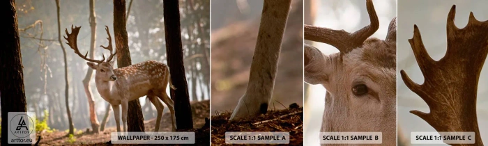 Échantillon De Papier Peint Standard Eco - La lumière de la jeunesse - Animaux, Cerf, Forêt - 100x30 cm