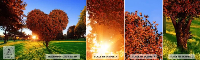 Échantillon De Papier Peint Standard Eco - Et comment ne pas aimer tomber - Paysage, Arbre, Rayons du soleil - 100x30 cm