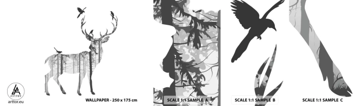 Échantillon De Papier Peint Standard Eco - La bonne âme de la forêt - Abstraction, Cerf, Nature - 100x30 cm