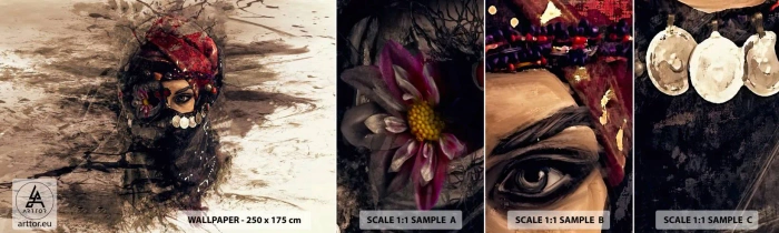 Échantillon De Papier Peint Standard Eco - Inquiétant, c'est le moins qu'on puisse dire - Abstraction, Visage de femme, Symboles orientaux - 100x30 cm