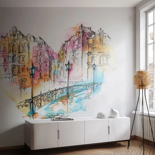 Papier Peint Photo Premium Sand - Le coeur de la ville - Ville, Architecture, Pont - 200x140 cm