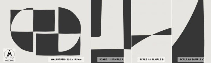 Échantillon De Papier Peint Standard Eco - Antithèse - Synthèse - Abstraction, Morceau, Noir et blanc - 100x30 cm