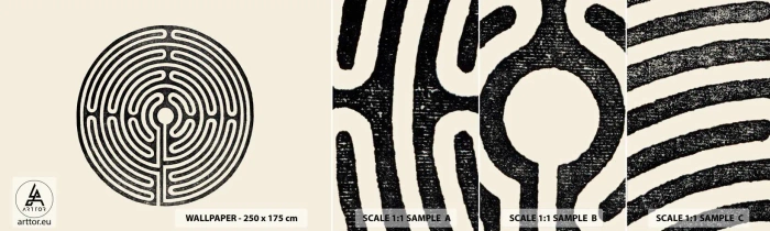 Échantillon De Papier Peint Standard Eco - Ordre mystérieux - Labyrinthe, Minimalisme, Noir et blanc - 100x30 cm