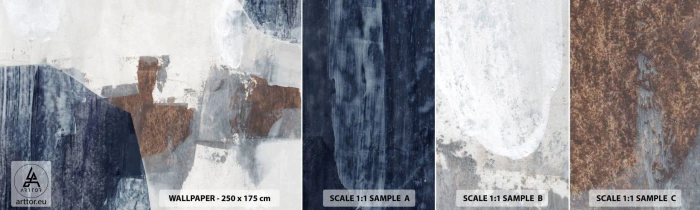 Échantillon De Papier Peint Standard Eco - Formes bleues et brunes - Morceau, Abstraction, Minimalisme - 100x30 cm