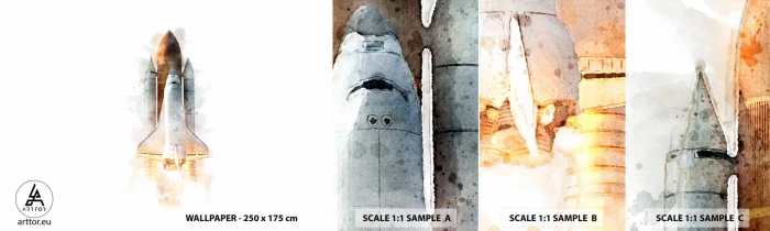Échantillon De Papier Peint Standard Eco - Des explorateurs pour commencer - Une fusée spatiale, Cosmos, Minimalisme - 100x30 cm
