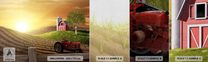 Échantillon de Papier Peint Premium Sand - Une ferme comme dans un conte de fées - Ferme, Paysage, Tracteur - 100x30 cm