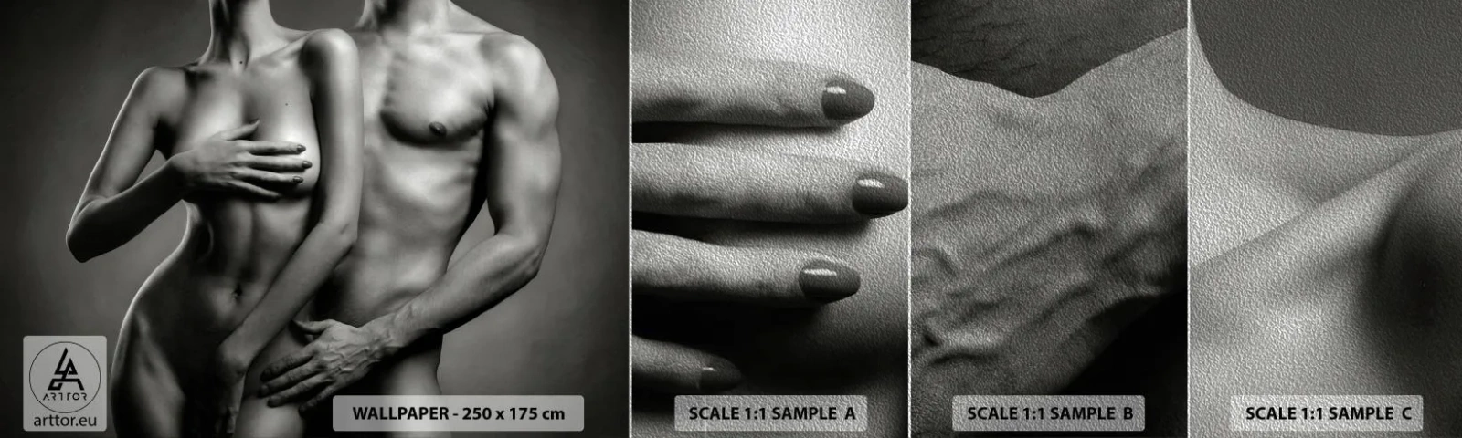 Échantillon de Papier Peint Premium Sand - Adam et Eve - Femme, Homme, Corps - 100x30 cm