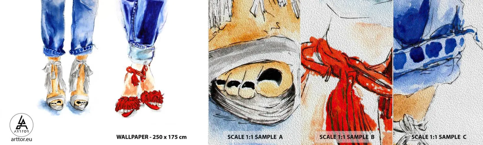 Échantillon de Papier Peint Premium Sand - Peut-être irons-nous nous promener? - Femme, Mode, Chaussure - 100x30 cm