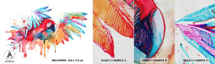 Échantillon de Papier Peint Premium Sand - . - Perroquet, Oiseau, Abstraction - 100x30 cm