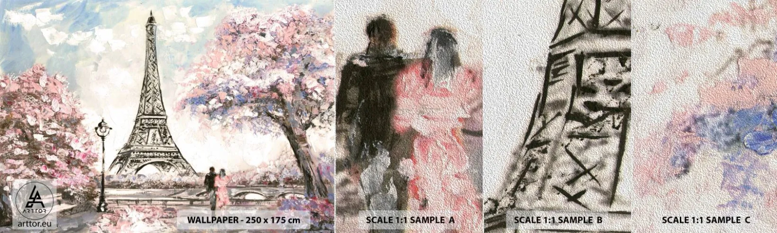 Échantillon de Papier Peint Premium Sand - Balade d'avril à Paris - Ville, tour Eiffel, Allée du parc - 100x30 cm