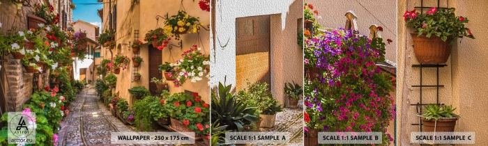 Échantillon de Papier Peint Premium Sand - Ruelle italienne - Ville, Fleurs, Architecture - 100x30 cm