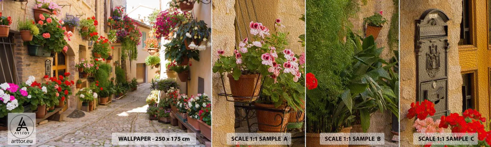 Échantillon de Papier Peint Premium Sand - Une inondation de fleurs - Ville, Italie, Belles rues - 100x30 cm