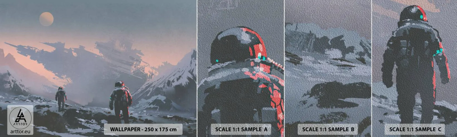 Échantillon de Papier Peint Premium Sand - Sous une étoile inconnue - Abstraction, Astronaute, Cosmonaute - 100x30 cm