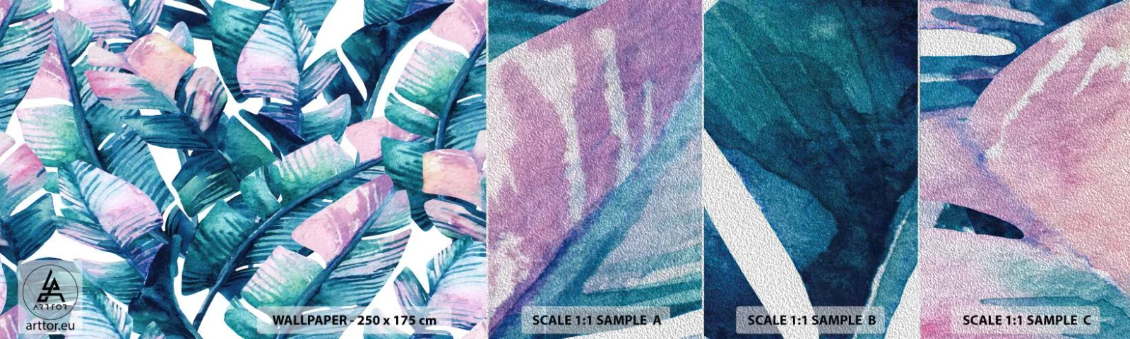 Échantillon de Papier Peint Premium Sand - Dans une bananeraie - Abstraction, Feuilles, Morceau - 100x30 cm