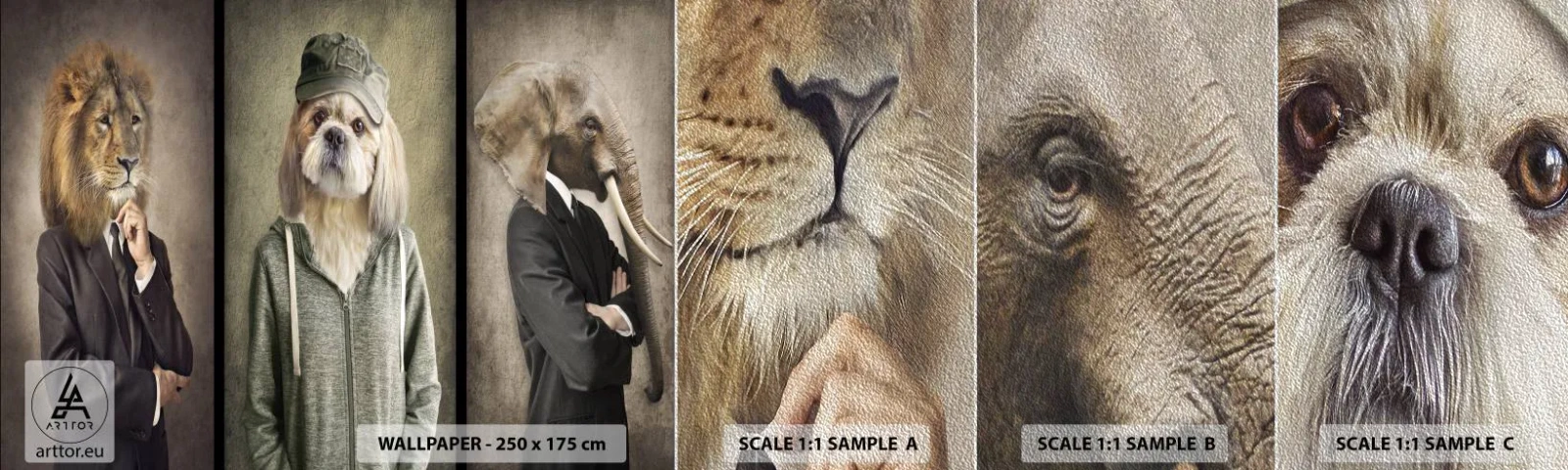 Échantillon de Papier Peint Premium Sand - je préfère plus détendu - Abstraction, Lion, Chien - 100x30 cm