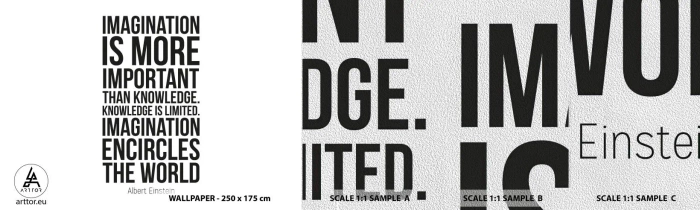 Échantillon de Papier Peint Premium Sand - Einstein sur le pouvoir de l'imagination - Typographie, Affirmation, Maxime - 100x30 cm