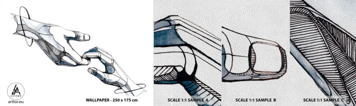 Échantillon de Papier Peint Premium Sand - Un bon geste - Abstraction, Mains, Graphique - 100x30 cm