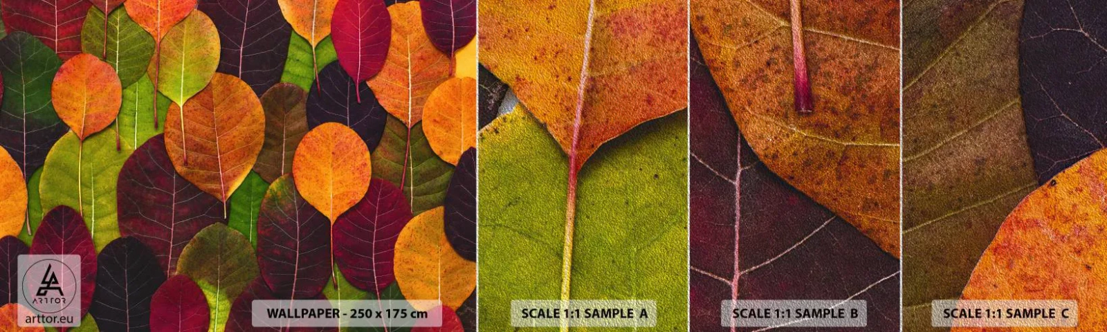 Échantillon de Papier Peint Premium Sand - Mozaique printannière - Graphique, Feuilles colorées, Morceau - 100x30 cm