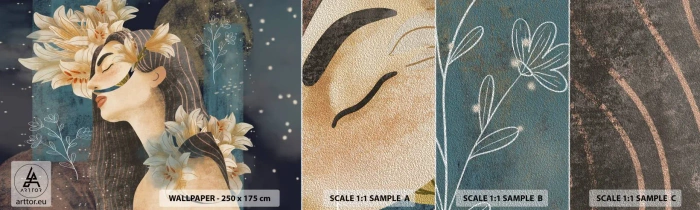 Échantillon de Papier Peint Premium Sand - Conte de fée sur la princesse lilas - Abstraction, Femme, Fleurs - 100x30 cm