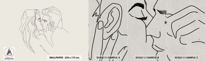 Échantillon de Papier Peint Premium Sand - Enlacé de sentiment - Graphique, Couple amoureux, Baiser - 100x30 cm