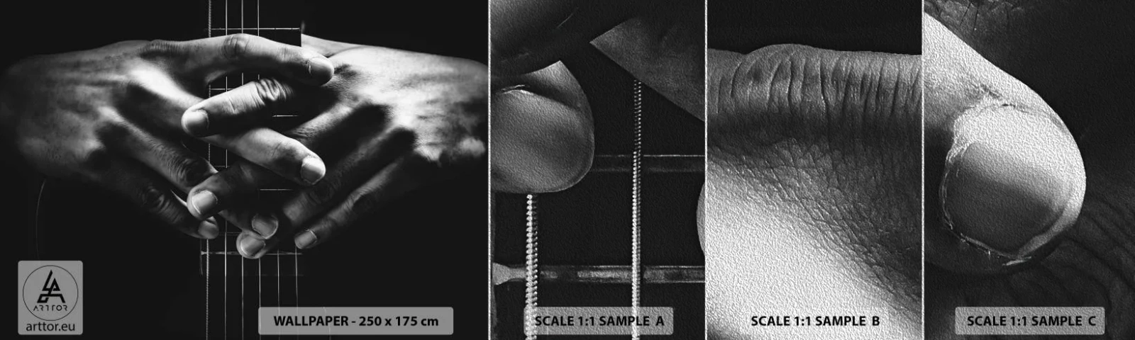 Échantillon de Papier Peint Premium Sand - Prière d'artiste - Guitariste, Musicien, Guitare - 100x30 cm