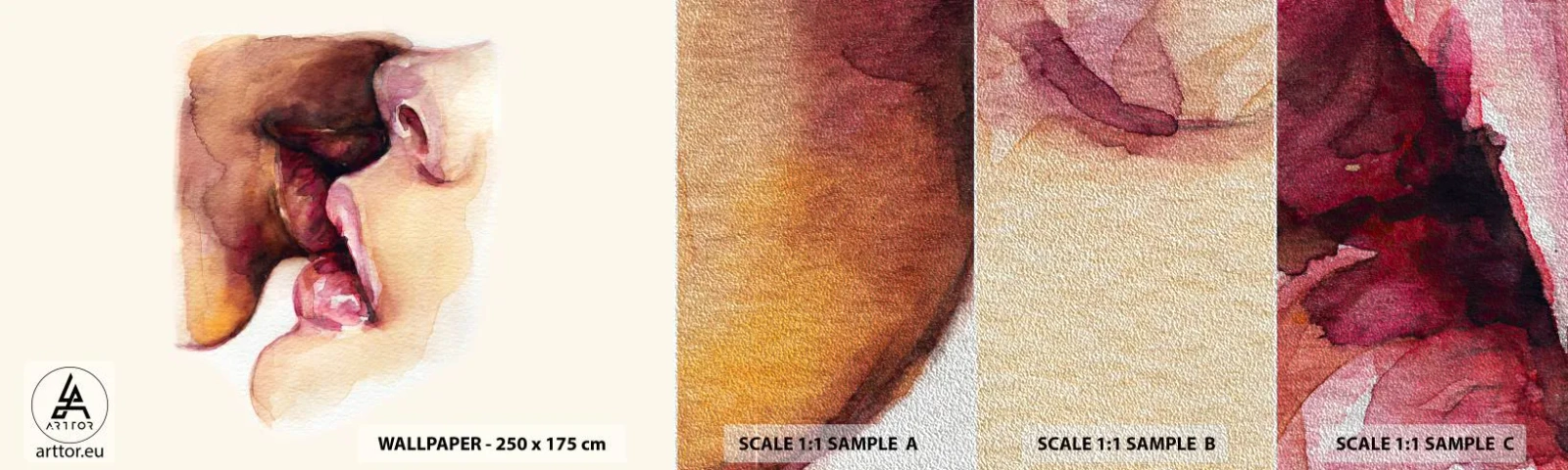 Échantillon de Papier Peint Premium Sand - Comme le jour et la nuit, la terre et le ciel - Abstraction, Baiser, Couple amoureux - 100x30 cm