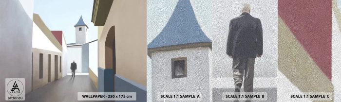 Échantillon de Papier Peint Premium Sand - Une promenade ensoleillée - Pastel, Bâtiments, Architecture - 100x30 cm