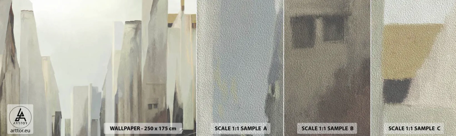 Échantillon de Papier Peint Premium Sand - Rêve de la ville - Minimaliste, Brillant, Ville - 100x30 cm