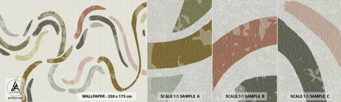 Échantillon de Papier Peint Premium Sand - Une joyeuse danse de l'abstraction - Pastel, Minimaliste, Brillant - 100x30 cm