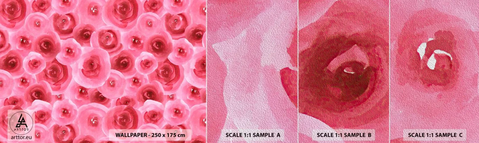Échantillon de Papier Peint Premium Sand - Roses en-haut et en-bas - Fleurs, Beauté, le romantisme - 100x30 cm