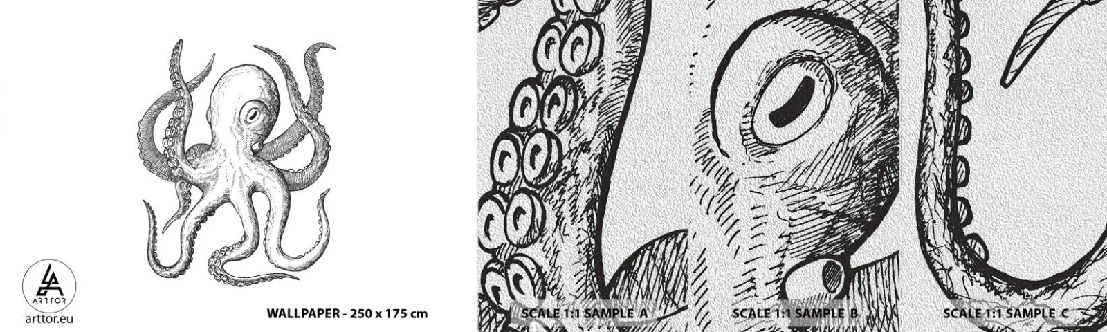 Échantillon de Papier Peint Premium Sand - Dansant avec les vagues - Pieuvre, Dessin, Bord de mer - 100x30 cm