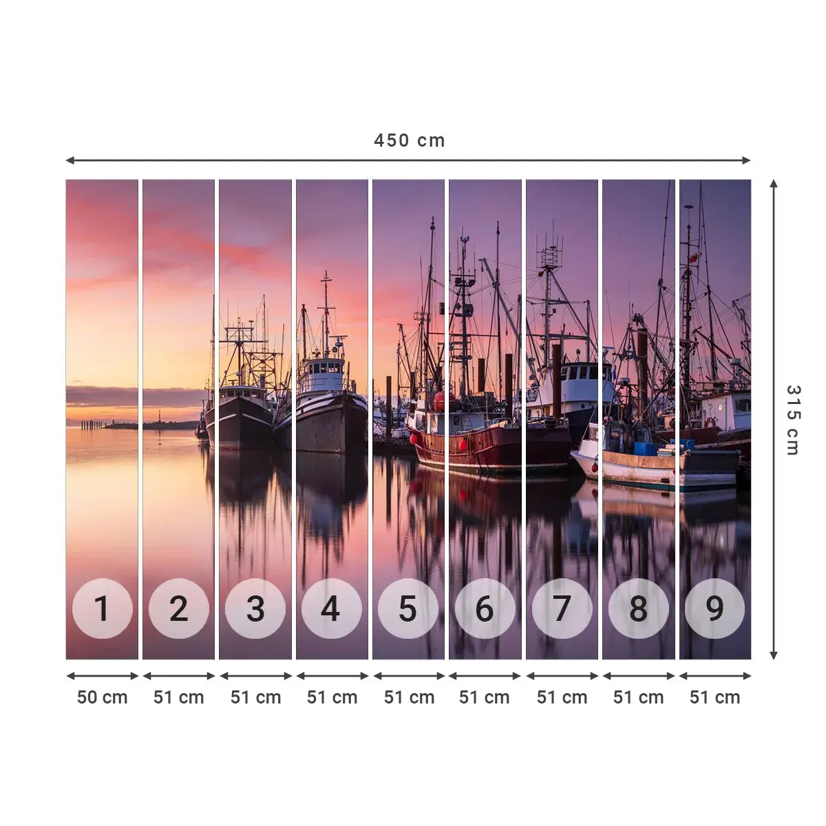 Papier Peint Autocollant Deluxe Sticker - Avant le jour suivant - Port des Pêcheurs, Bateaux, Pêche - 450x315 cm
