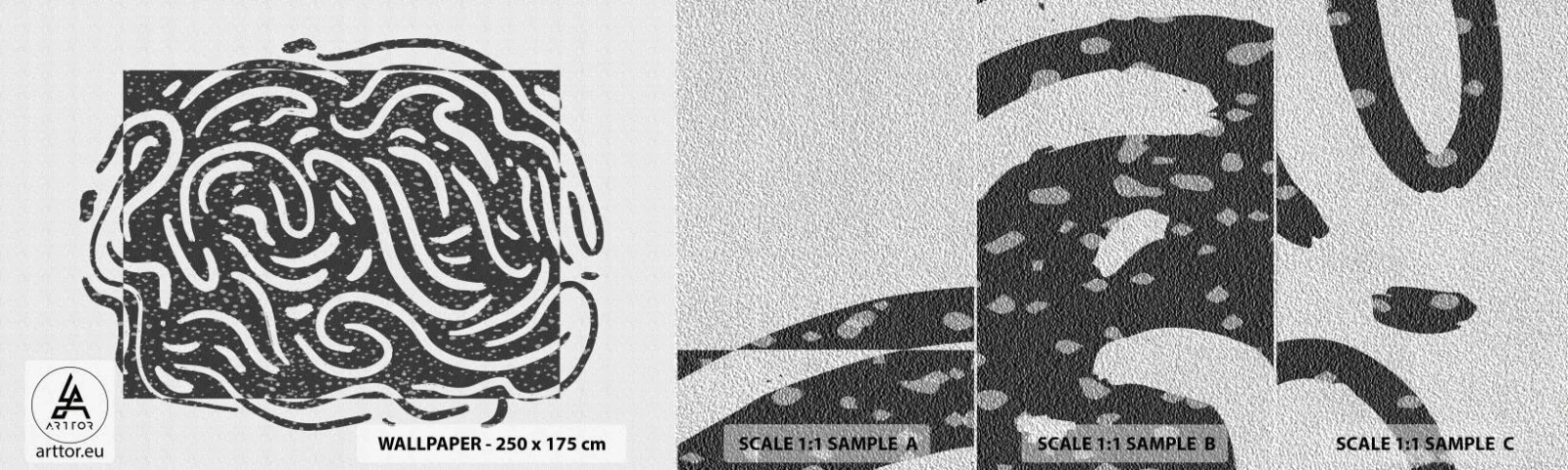Échantillon de Papier Peint Premium Sand - Abstraction : la danse de la joie - Bohème, Noir et blanc, Minimalisme - 100x30 cm