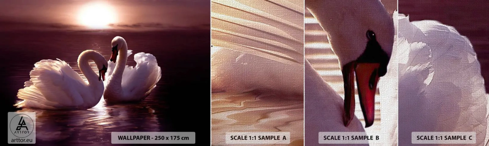 Échantillon de Papier Peint Premium Canvas - Jusqu'à ce que la mort nous sépare - Animaux, Paysage, Cygnes - 100x30 cm