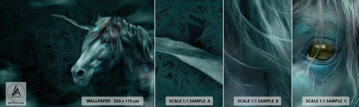 Échantillon de Papier Peint Premium Canvas - Dans une forêt de conte de fées - Licorne, Fantaisie, Abstraction - 100x30 cm
