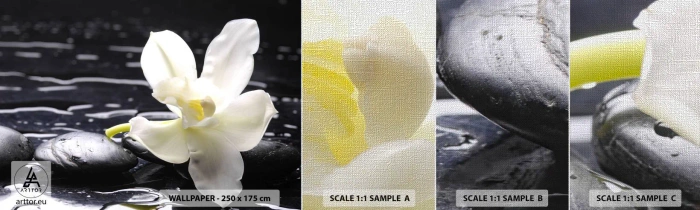 Échantillon de Papier Peint Premium Canvas - Étude en noir et blanc - Fleurs, Des pierres, Orchidée - 100x30 cm