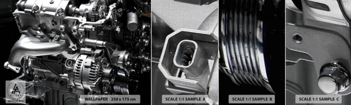 Échantillon de Papier Peint Premium Canvas - Acier, beau, fort - Automobile, Moteur de voiture, 3D - 100x30 cm