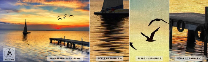 Échantillon de Papier Peint Premium Canvas - Le soir revient - Paysage, Voilier, Coucher de soleil - 100x30 cm