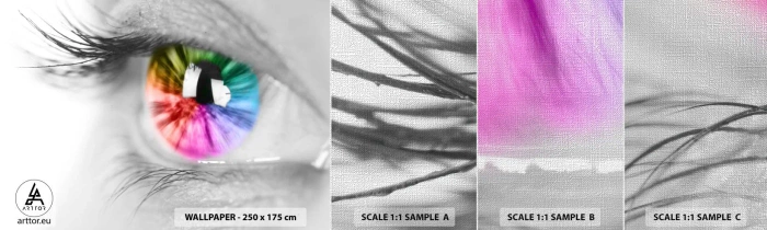 Échantillon de Papier Peint Premium Canvas - Regarde le monde en couleur - Abstraction, Oeil coloré, 3D - 100x30 cm