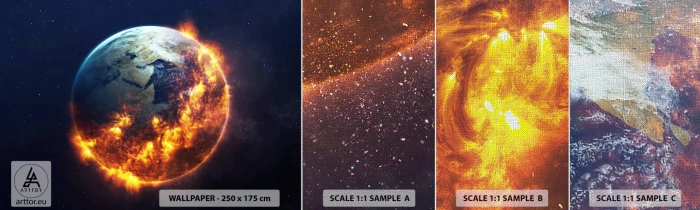 Échantillon de Papier Peint Premium Canvas - La flamme de l'apocalypse - Cosmos, Planète Terre, Flammes de feu - 100x30 cm