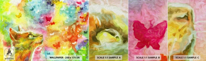 Échantillon de Papier Peint Premium Canvas - Bayou-bayou au paradis des chats - Animaux, Chat, Papillon - 100x30 cm