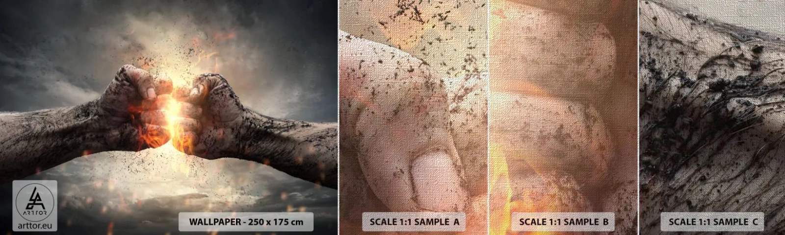 Échantillon de Papier Peint Premium Canvas - Lève-toi pour le combat - Abstraction, Main serrée, Forcer - 100x30 cm