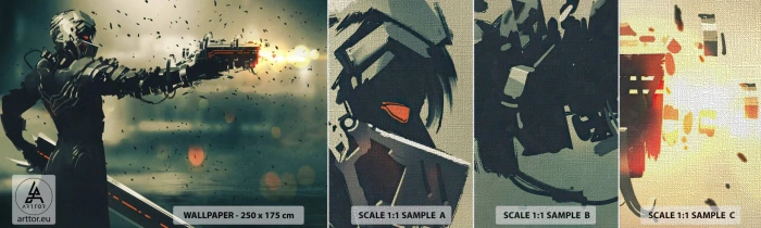 Échantillon de Papier Peint Premium Canvas - L'arme fatale - Votre propre Terminator - Abstraction, Fantaisie, Futur guerrier - 100x30 cm